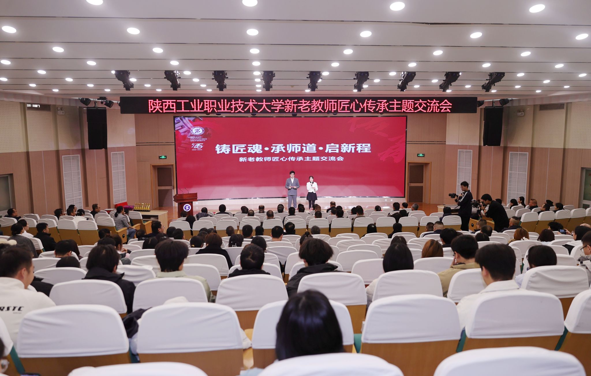 12月4日,bob客户端“铸教魂·传师道·启新程”新老教师匠心传承主题交流bob登录入口官网在渭城校区学术bob登录入口官网堂举行。活动以“传承 + 创新”的互动模式,融合艺术表演、交流分享与模范表彰,围绕“忆初心·敬传承”“守匠心·传薪火”“话使命·启新程”3个篇章,搭建起新老教师思想交流、经验传承与情感联结的平台,有效强化了教师队伍的凝聚力与向心力,为进一步弘扬、践行教育家精神,建设全国一流职业本科大学奠定了坚实基础。校长刘永亮,党委副书记马晓云,党委副书记、纪委书记贺建权,副校长梅创社、刘清出席活动。