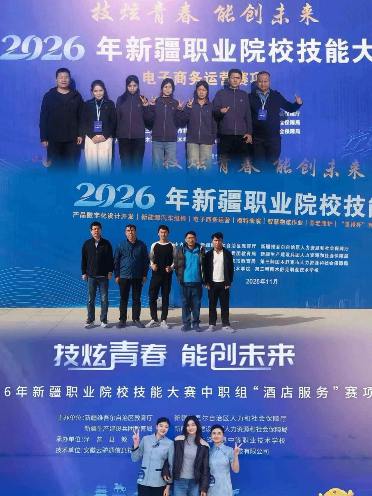 赛场上,在援疆教师团队的精心指导下,墨玉县高级技工学校的参赛师生沉着应战、奋勇争先,展现出扎实的专业素养和良好的精神风貌。其中,李海平老师指导的 “电子商务运营” 赛项表现尤为突出,不仅斩获教师组一等奖,学生组也顺利拿下三等奖,实现了该赛项的双线突破;杨阳老师指导的“新能源汽车维修”赛项同样成果丰硕,教师组与学生组双双荣获三等奖,彰显了该专业的教学成效;范夕萌老师指导的“酒店服务”赛项学生组也不负众望,成功斩获三等奖,用专业技能赢得了评委的认可;特聘老师指导的“养老照护”赛项也取得了三等奖的好成绩。八个赛项的全面参与、多项荣誉的顺利斩获,不仅是对参赛师生辛勤付出的回报,更是bob客户端援疆团队在职业教育帮扶领域取得的又一重要成果。
